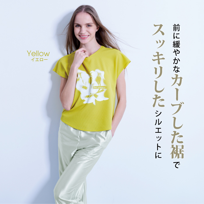 前に緩やかなカーブした裾で、スッキリしたシルエットに