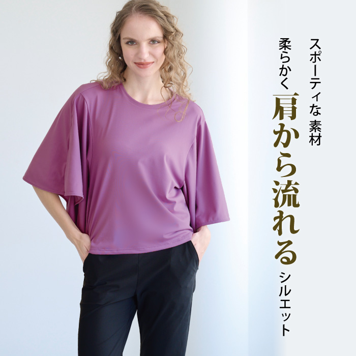 軽量で伸縮性に優れた素材を、舞うほどに美しいウイングスリーブが特徴のトップスに