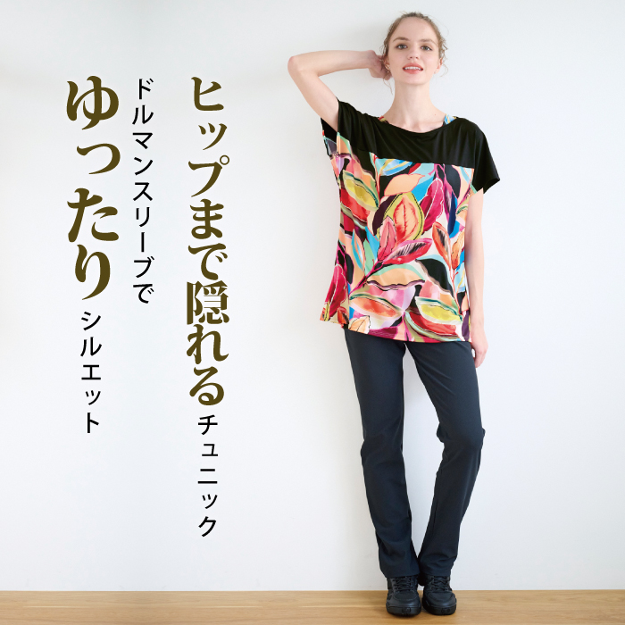 シルエットが美しい、ドルマンスリーブの配色チュニック