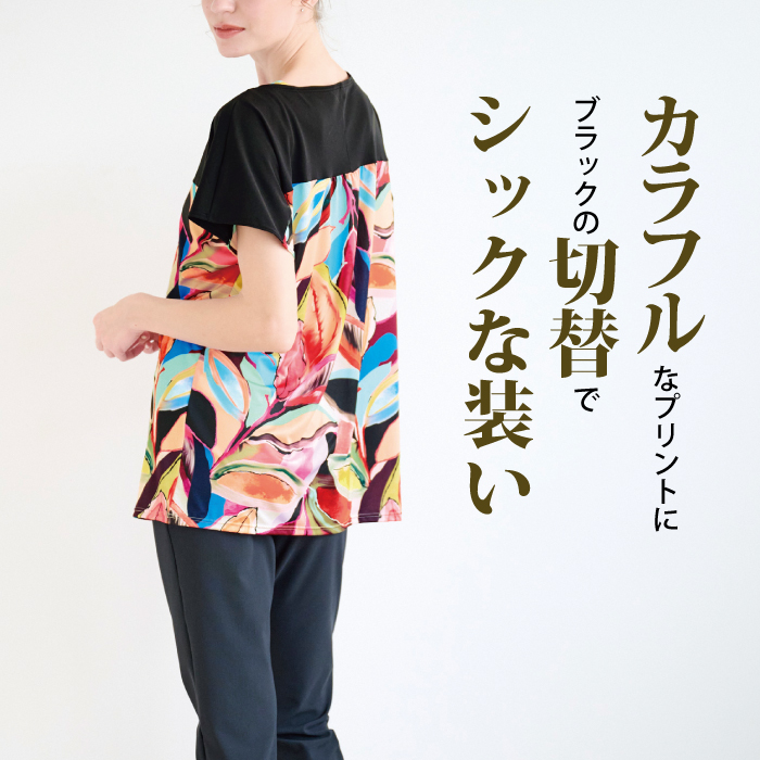 ヨーク切替をシックなブラックで組み合わせた大人チュニック