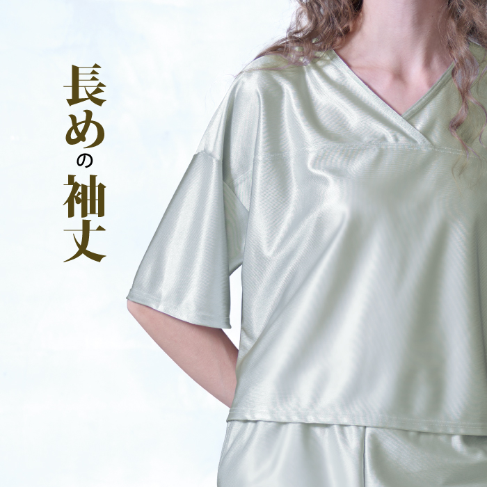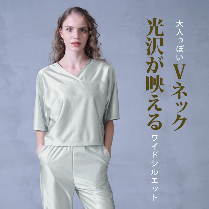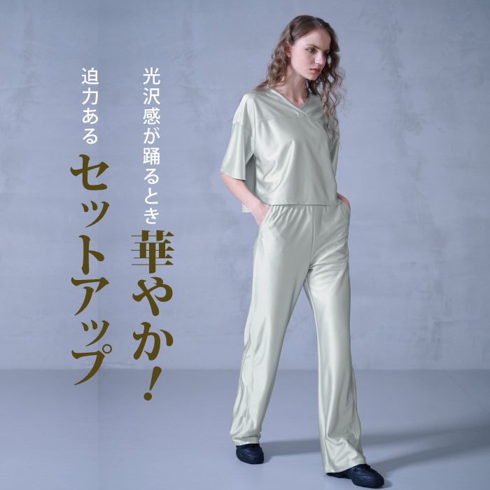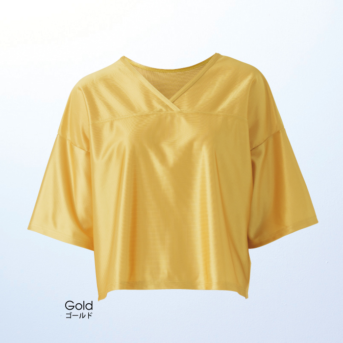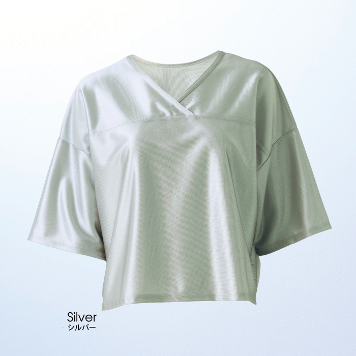 光沢を存分に生かした、ダンサブルで華やかなショートトップス
