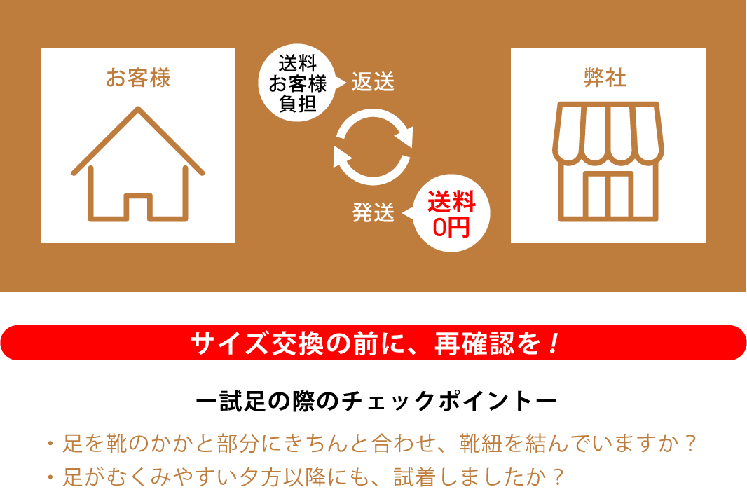 ※2回目以降のカラー・サイズ交換は、往復送料ともにお客様負担となります