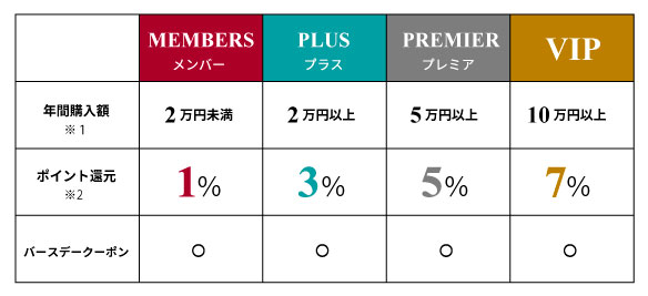 ※ 会員ランクの確定は、順次システム反映となります為、タイムラグがございます。